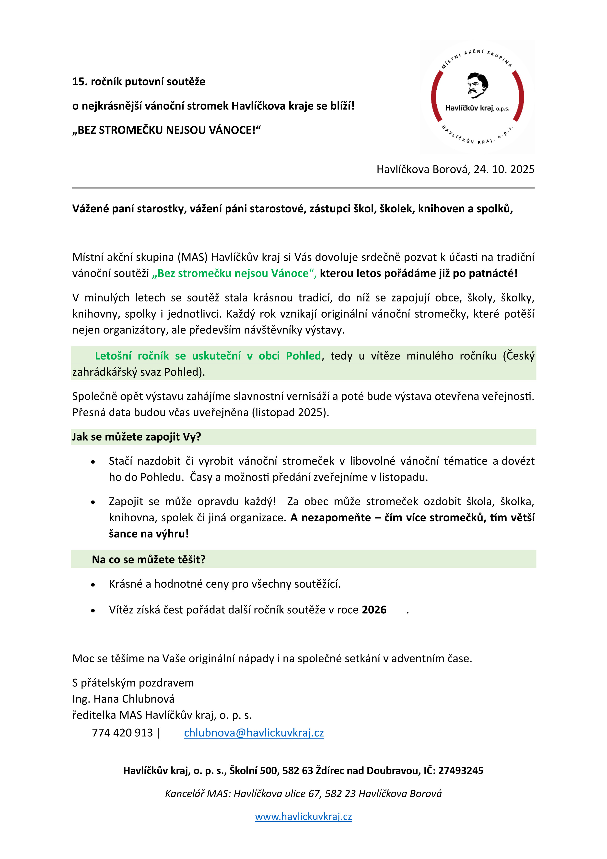 » 15. ročník putovní soutěže o nejkrásnější vánoční stromek Havlíčkova kraje "BEZ STROMEČKU NEJSOU VÁNOCE" v obci Pohled